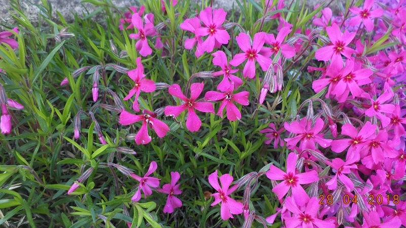 który w tym roku miał aż 6 kwiatów, inny właśnie ten zwykły, czerwony podobnie, z jednego rozrósł się do pokażnej kępy.