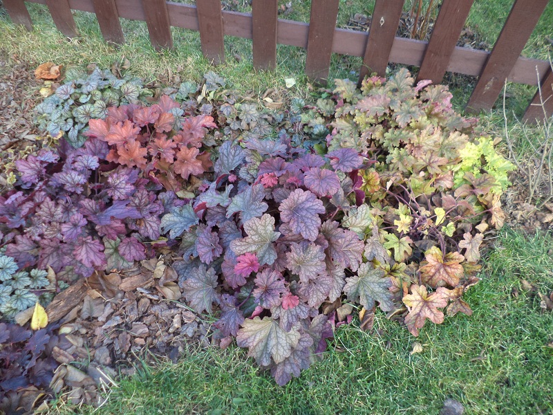 W przeciwieństwie do host, po których już nie ma śladu,bo poszły spać, żurawki cieszą kolorami pomimo grudniowej pory.