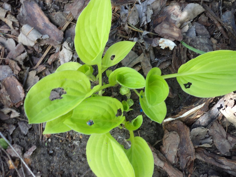 Żurawki mocno okaleczone, za to hosty mają się dobrze. zwyc