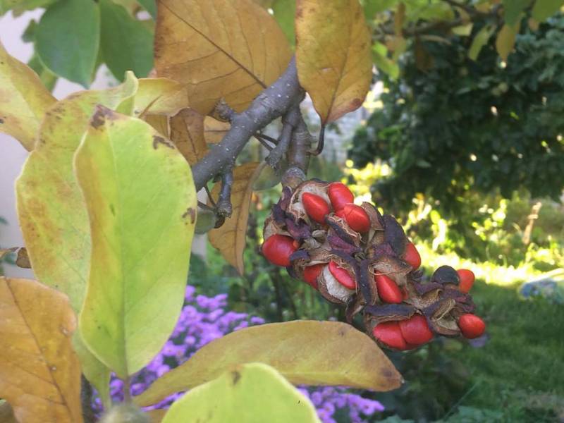 Magnolia 'Rogów' obsypana nasionami