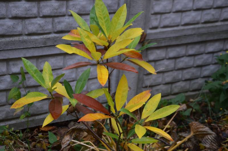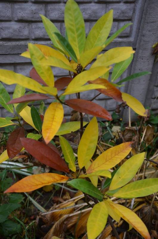 Rhododendron 'Dopey'. Zakup wiosenny, który zakwit niespodziewanie na jesieni. Ale przynajmniej kolor się zgadza :)
