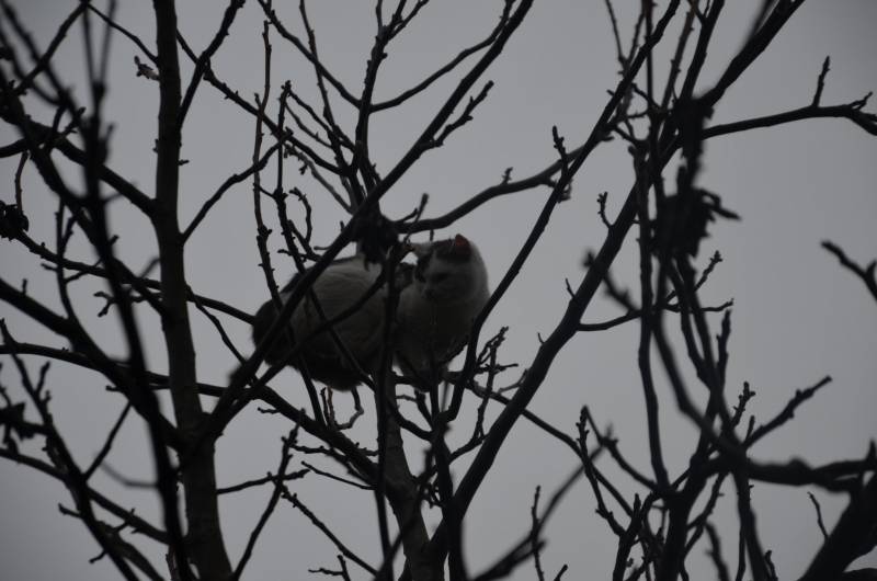 ... i kot, którego psica zagoniła wysoko na drzewo ... Odważny swoją drogą ...