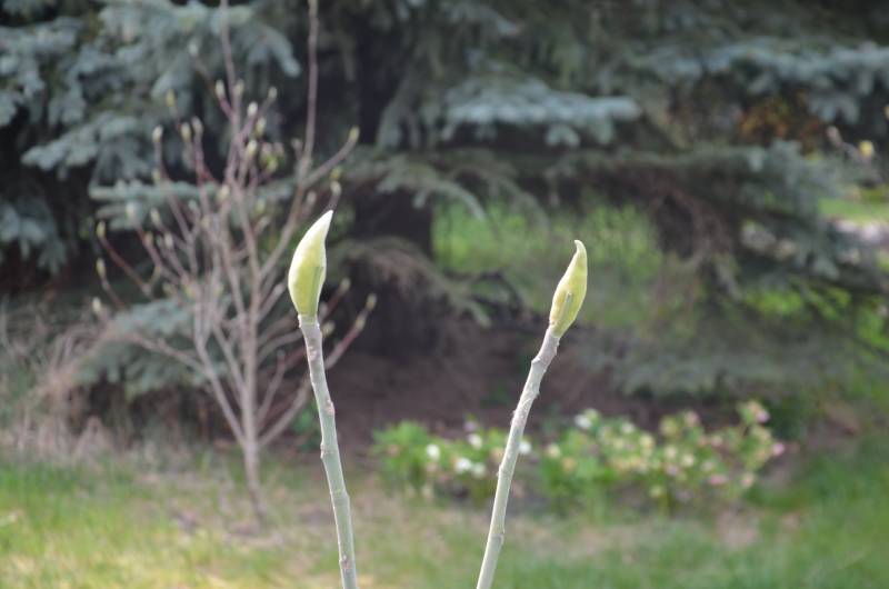 Edyto, tak, magnolie kwitną, a właściwie niektóre już przekwitają, niektóre dopiero się szykują do kwitnienia. Niestety, nocne przymrozki tradycyjnie już zwarzyły płatki wczesnych magnolii. Szkoda było patrzeć na piękną 'Jade Lamp' ...