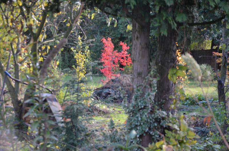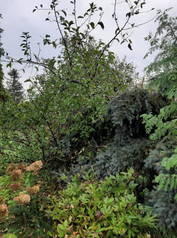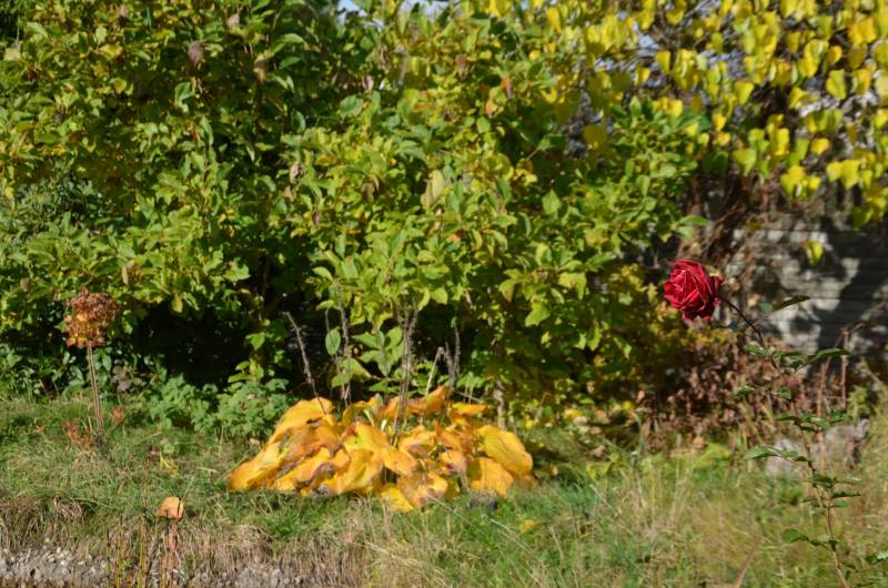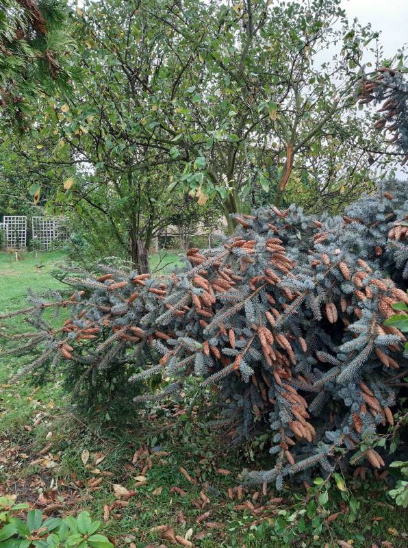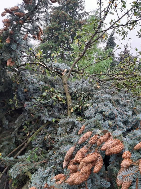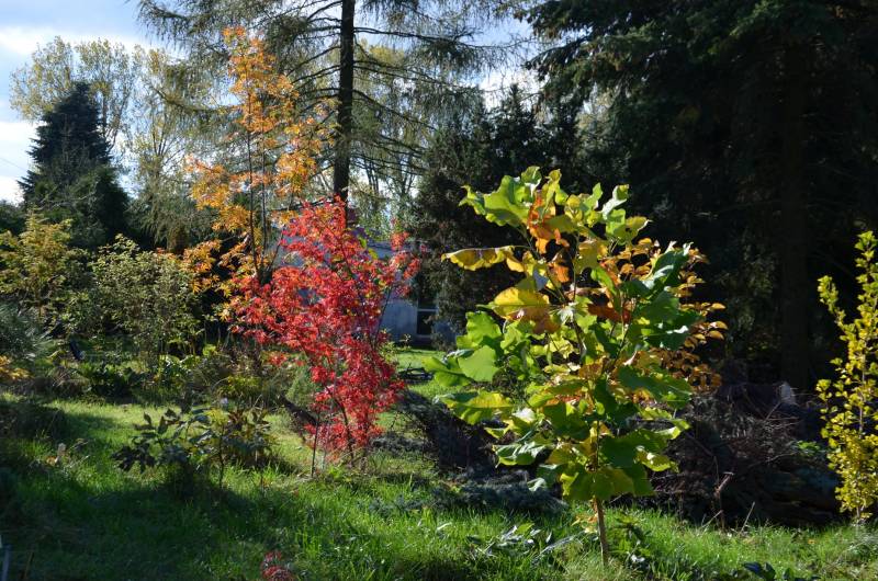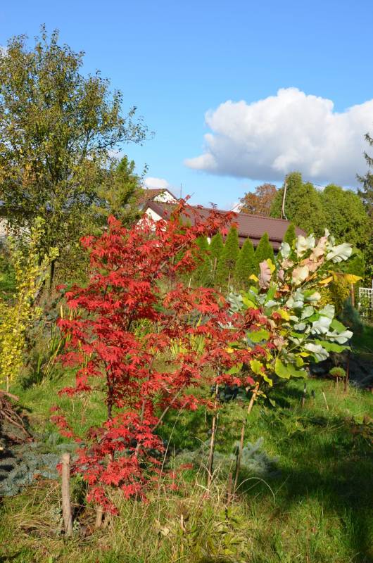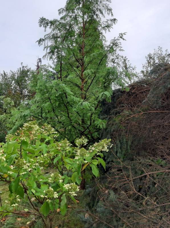Jest wyższa od płotu i ma już łuszczącą się korę na dole. Kiedyś bardzo byłam z niej dumna (taki rarytasik). Właściwie i nadal jestem