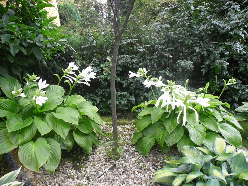 Dwa lata temu założyłam małe hostowisko pod dwoma starymi orzechami rosnącymi w kącie ogrodu,