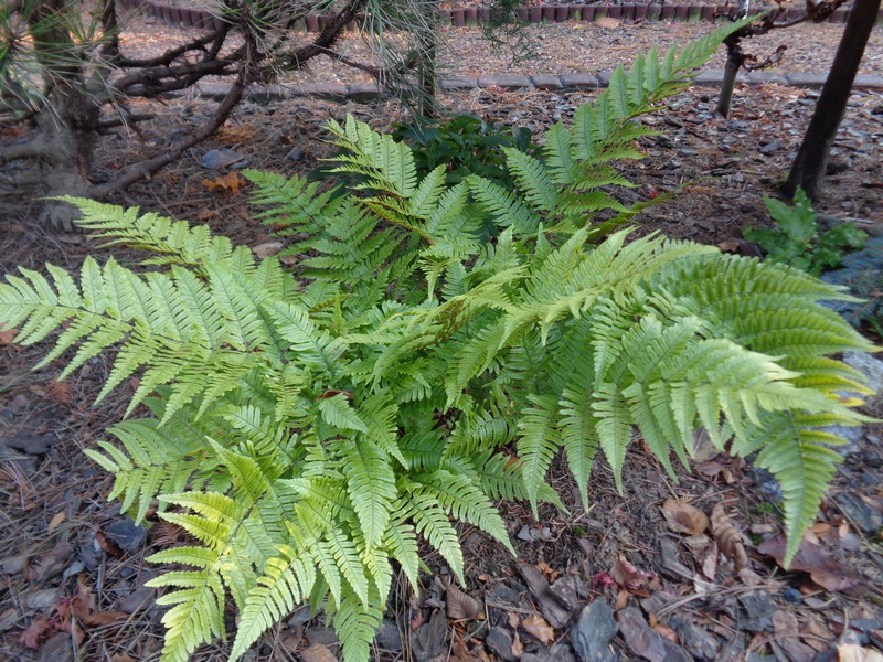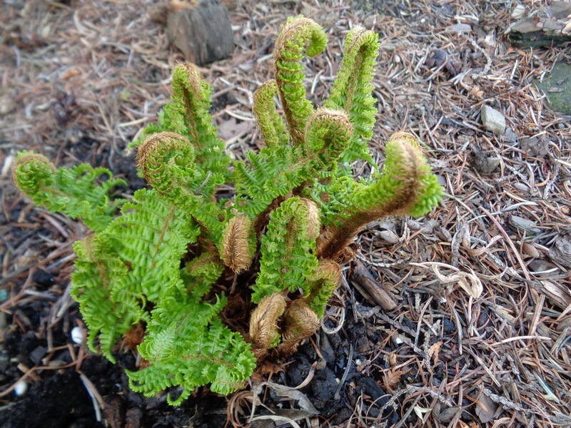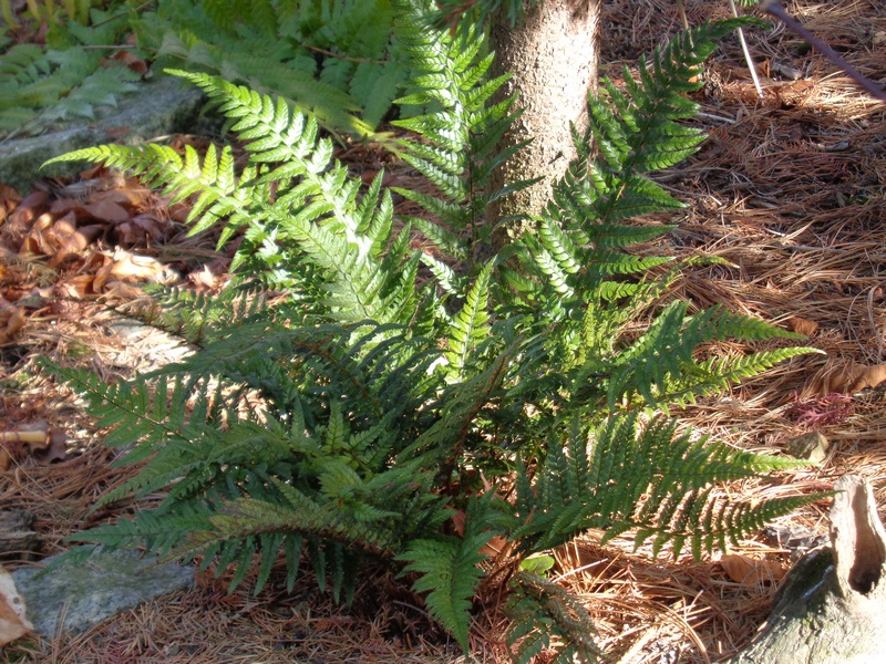 Sytuacje ratują paprocie i jakieś zimozielone krzewy.