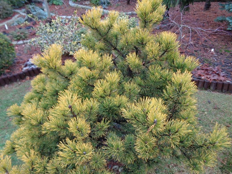 Sosna Gold Coin,pod wpływem mrozu wybarwiła się na żółto.
