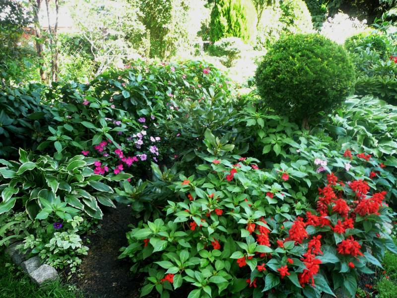 udało się sporo ogarnąć w ogrodzie ....Inuś- niecierpki muszą być inaczej bardzo smutno by tam było....a wiesz ,że siałam dwa razy i jeszcze mi posadzone ślimaki obżarły i nawet z desperacji kupiłam trzy sadzonki polewkamax ,ale się udało a teraz wszędzie uszczykuje i w wolne miejsca wsadzam ..........no właśnie znowu upały a dziś było tak dobrze 25 stopni maks