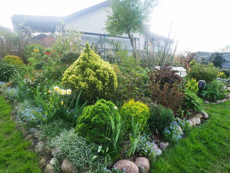 Oj ta pogoda wieczne zmartwienie ogrodnika......dlatego ,żeby zmniejszyć stres poczyniłam zakupy w dwóch ogrodniczych .Do pierwszego jechaliśmy 27km bo chciałam kupić rodki Polonez ,George Sand i Fryderyka oraz magnolię Red as Red,ale magnolii już nie było a rodki przekwitnięte ,wykopałam tylko George Sand z pąkami reszty nie wzięłam bo wyglądały identycznie a chciałam porównać kwiaty ,no i odkupiłam padniętego Jagiełłę