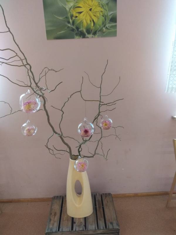 Co do wystawy od razu miałam refleksję, że nie wymyśliłam sposobu, jak policzyć ludzi, którzy ja odwiedzili. Statystyka jest czasami potrzebna. Choć nie ilość lecz jakość się liczy. Goście byli różni. Czasami ktoś wszedł i wyszedł. Taki pan był. Błyskawiczne zwiedzanie. Ale jak ludzie wchodzili w grupach, było im raźniej i oglądali z większą uwagą, zadawali pytania. Kilka osób weszło, bo wciągnęłam ich na siłę - nie żałowali potem . Kwiaty można było wąchać, czochrać, dotykać. Dzieciom się podobało np, że można rozetrzeć koper i powąchać.