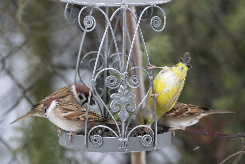 Ptaszyska jedzą na potęgę, ale nie widzę grubodziobów. A wiem, że są, tylko musiały dorwać lepszą stołówkę.