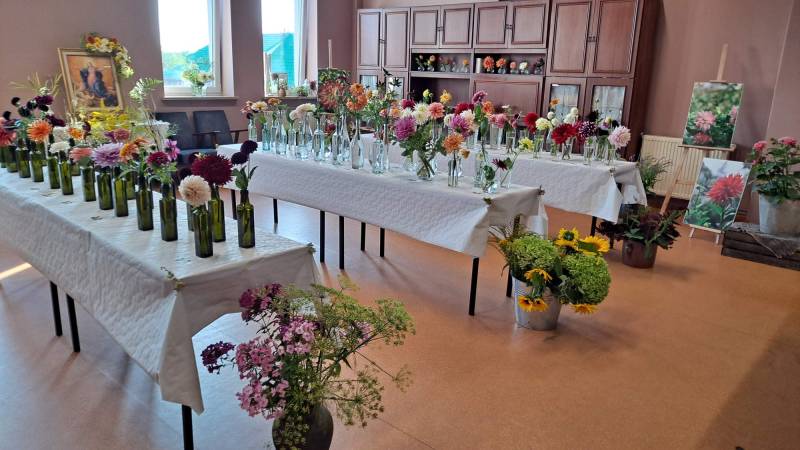 Zdjęć nie mam, bo kwiaty wyrżnięte, a w weekend miałam dodatkowo imprezę rodzinną. Te są sprzed wystawy: