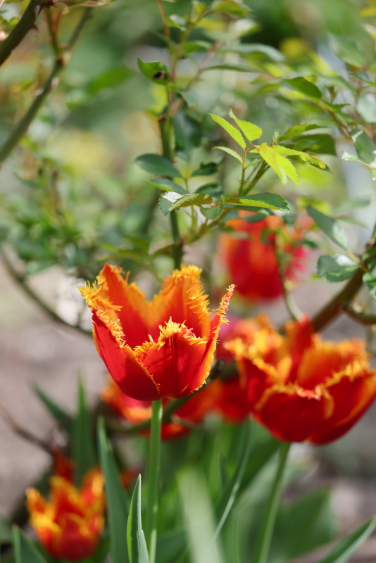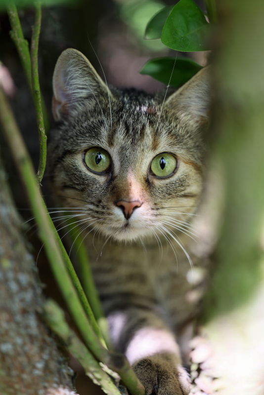 Normalnie to ja kotów nie uważam, ale jak robiłam zdjęcia tulipanów, spomiędzy bzu wylazło takie coś i z miną niewiniątka się na mnie patrzało i kombinowało, jak czmychnąć bez konsekwencji. No rozbroił mnie.