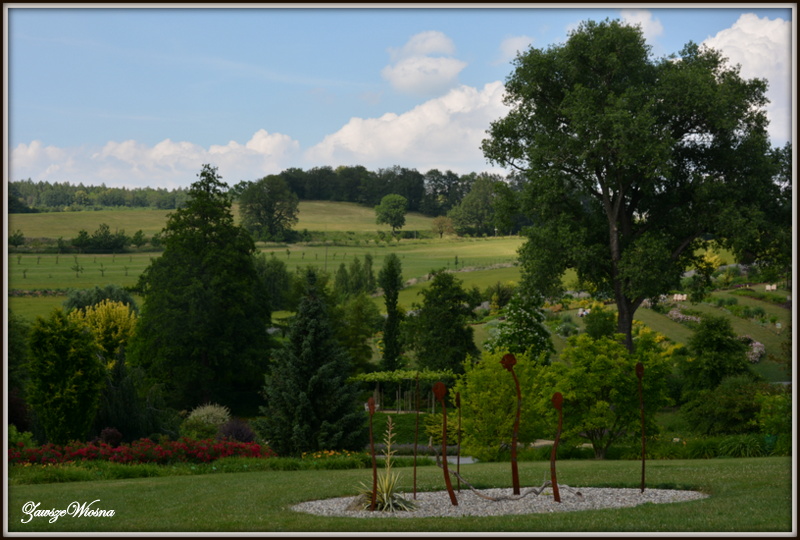 Czerwiec nie jest najlepszym miesiącem na zwiedzanie i podziwianie. Różaneczniki juz przekwitły , liliowce jeszcze nie zaczęły. Byłam tuż przed świętem piwonii - niestety piwonie w tym roku zakwitły wcześniej. Ale taki spacer, kiedy niby nic się nie dzieje też ma swoje uroki. Można spojrzeć na znane miejsca z innej perspektywy. I ten luz, spokój, żadnych tłumów