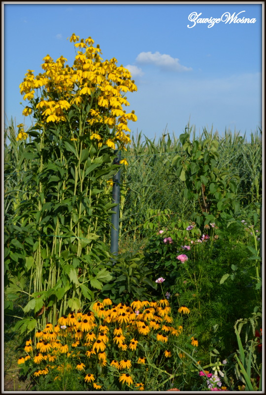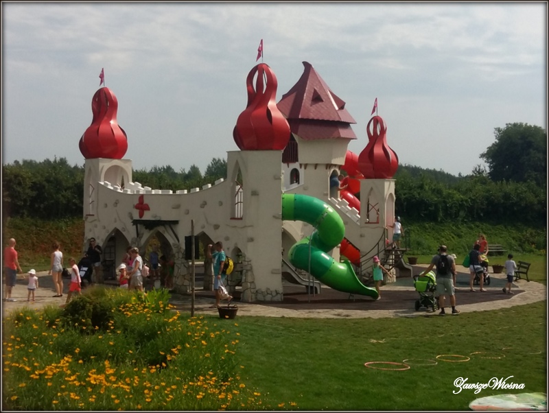W piątek mieliśmy w planach "dzień dla dzieci", czyli "Magiczne Ogrody" w Trzciance. Miejsce bajeczne, niespotykane, nieco komercyjne ale i tak warte uwagi, zwłaszcza dla rodzin z małymi dziećmi. Obawiałam się , że tylko mała będzie zadowolona, a chłopcy (12 i 15 l) już są trochę za drorośli na tego typu atrakcje. Na szczęście wszystkim bardzo się podobało i każdy znalazł coś dla siebie : malutka - zamki, wróżki, baseniki, panowie - zjeżdżalnie, pływanie na tratwach, strzelanie z kuszy, park linowy, a ja - kwiaty - mnóstwo kwiatów