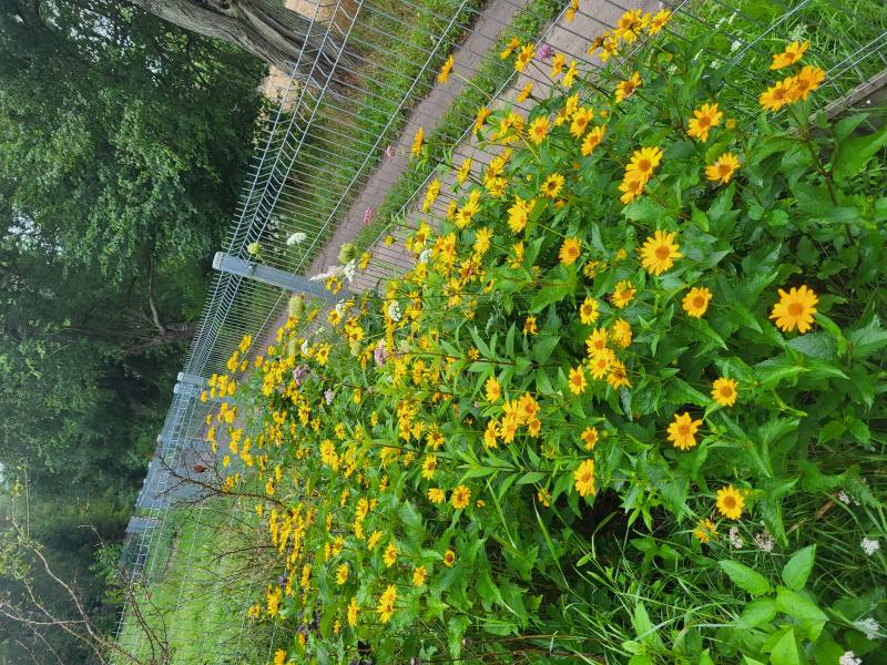 Mają ogrodzony wybieg, z uwagi na leśne otoczenie i obecność lisów, jenotów i drapieżnych ptaków i wolno żyjących kotów. Wybieg jest ogrodzony z każdej strony (z góry też) i siatka jest wkopana na pół metra wgłąb.