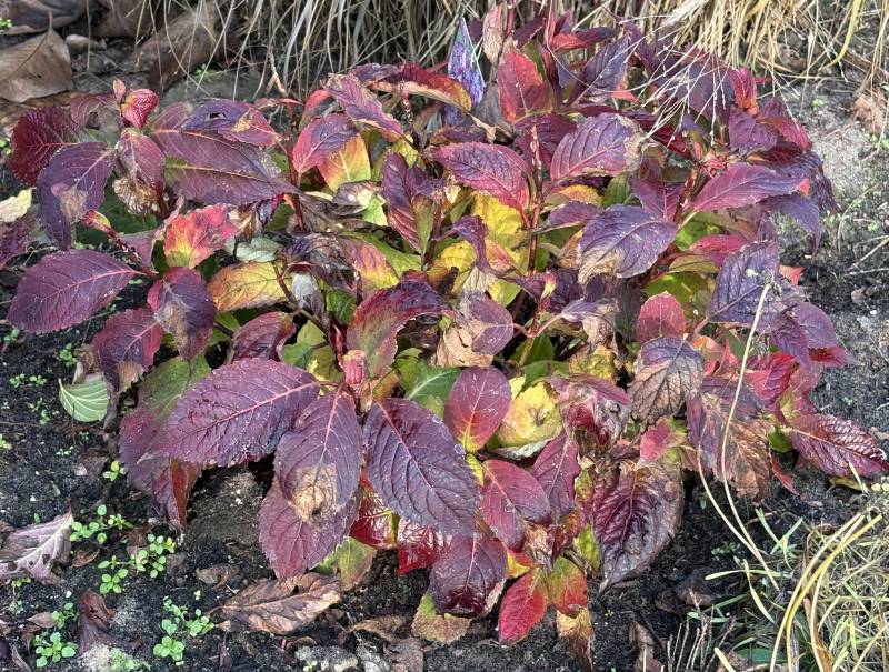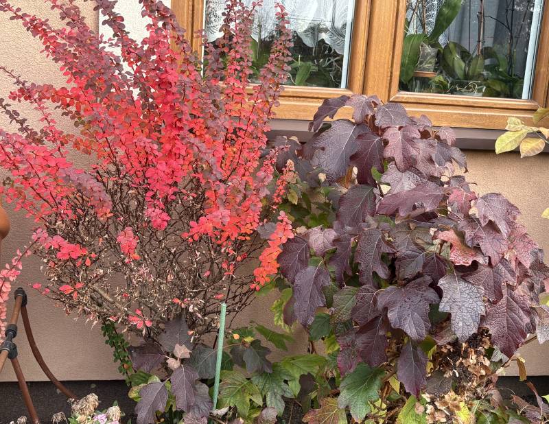U mnie już goło a hortensjom już dawno liście pomarzły i ostatnio obrywałam te zwiędłe szmatki.
