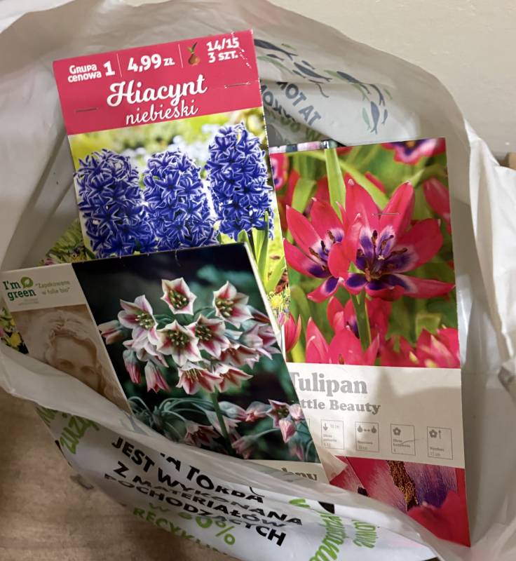 Zrobiło się ciepło więc rośliny gubią się czy to już wiosna czy chwilowa przerwa w zimie .Zaszalałam cebulowo w Biedronce…może nie rarytasy ale 0.99 to cena która prowokuje do zakupu więc spokojnie można sadzić