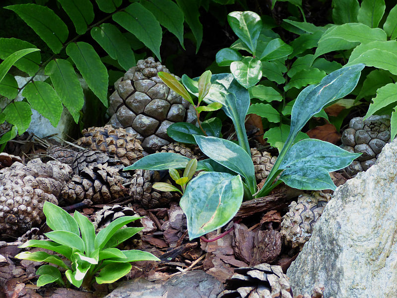 tym razem w menu oprócz 'Arystokratki' znalazły się także 'Remember Me' i 'Abiqua Drinking Gourd'... no chyba że jeszcze czegoś moje oczy nie widzą, co w gąszczu paprotnim jest całkiem możliwe... wszystkie to hosty twarde, o dobrej substancji liścia... no ale takie to właśnie ta gąsienica lubi... taa... ale tak poza tym, to - odpukać! - ten sezon jest faktycznie niczego sobie, jeśli chodzi o fason, trzymany przez hosty, choć takich prosionków po ogródku kręci mi się całe mnóstwo... blee... i bezmuszlowe dziady też łażą... drugie blee