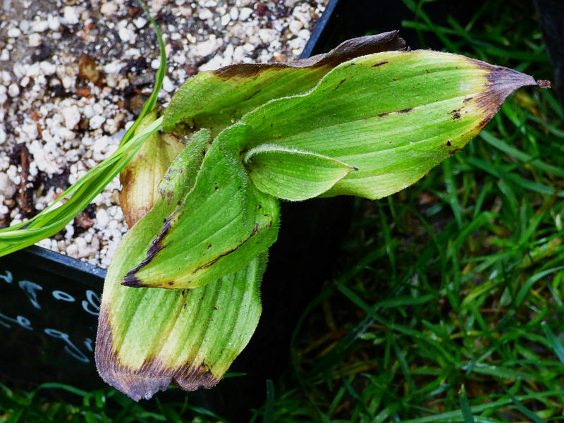 'Pink Spike' o mocno wybarwionych, bordowych liściach, zakupiona już w trakcie szaleństwa wyprzedaży stoisk i początkowo umknęło mej uwadze, gdzie...