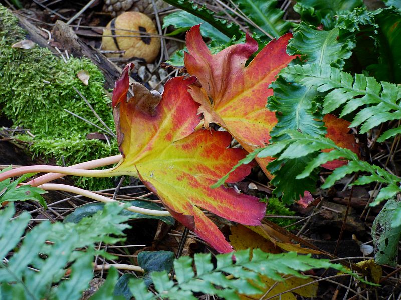 Wspomniana mukdenia 'Karasuba' przebarwiała się w tym sezonie przepięknie...