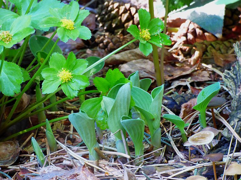 Ciemierniki orientalne wciąż z nowymi kwiatami