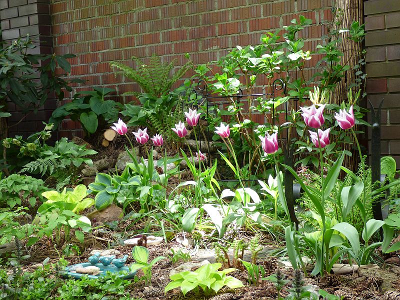 natomiast murek był od zawsze i od zawsze też był zasłonięty matą, po której pięła się hortensja 'Mirranda'... urodna to ona była wielce, lecz wybitnie na tej urodzie traciła już w lipcu... zasychały jej brzegi i to do tego stopnia, że żałość brała, gdy się na nią patrzyło... w pewnym momencie (jesienią 2019) dostała eksmisję a wraz z nią połamana mata, bo ofkoz nie raczyła się od niej dobrowolnie odczepić... i wtedy to się stało... odsłonił się murek... a ja rzekłam: To przecież murek!