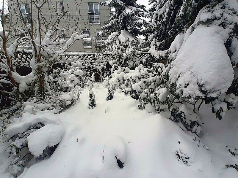 a przynajmniej ich znaczną część... jak również w dziurach, które mi się porobiły w plastrach drewna, po których stąpam na rabatach... już widzę to moje stąpanie na wiosnę...
