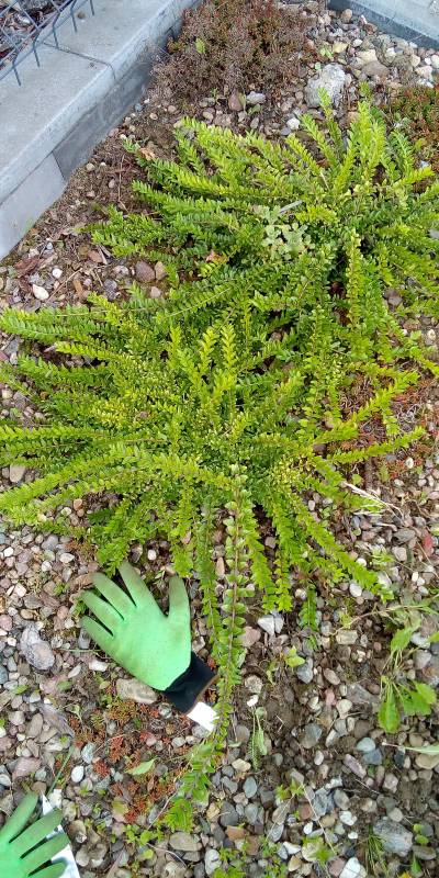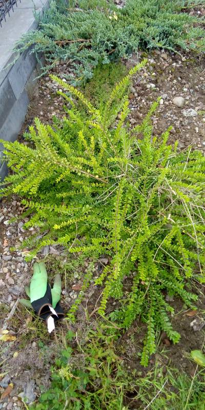 Ewa, chyba róznie z nim bywa :nie_wiem Właśnie wróciłam od synowej, której dałam sadzonki dwa lata temu i zrobiłam fotki komórką, specjalnie położyłam obok rękawicę, aby pokazać wielkość. Dwa pierwsze zdecydowanie płaskie jak dotąd, ale już ten trzeci rośnie trochę w górę. Miałam też taką sadzonkę,dałam siostrze, która wręcz miała pień i szła bardzo w górę wink-3