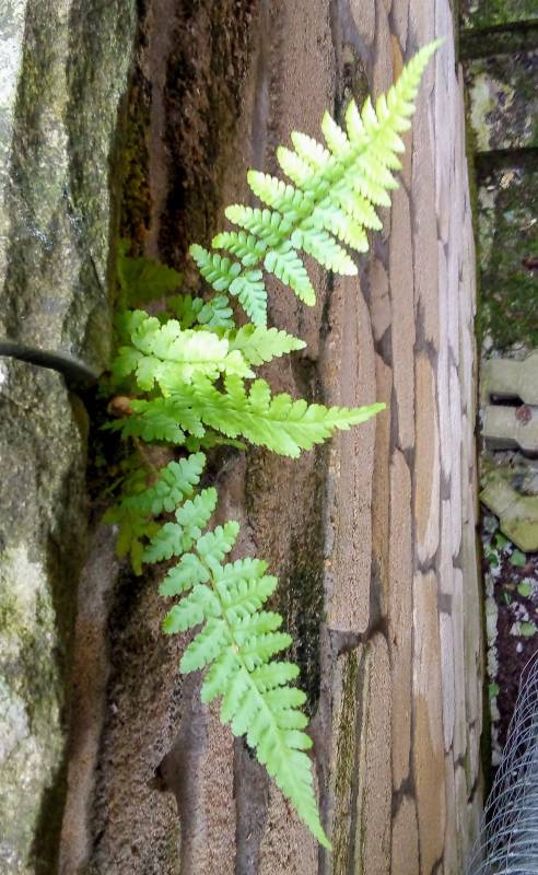 - najpierw zobaczyłam na murku z piaskowca smerdyńskiego, nad schodami do piwnicy niespodziankę :zielony
