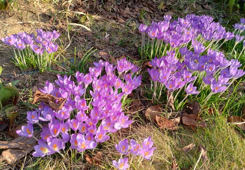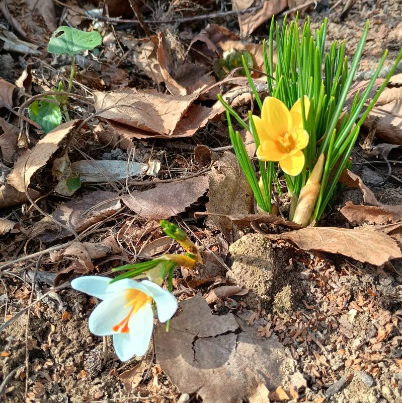 Wiosenne przylaszczki, ranniki i nawet dwa krokusy cieszą w szarości pozimowej.