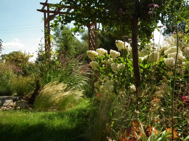 W ogrodzie robi się już jesiennie, trawy i hortensje w pełnym rozkwicie, choć jeszcze kilka miskantów dopiero zaczyna pokazywać kłosy. Swoją drogą jest tak ciepło miskanty wykłosiły się dużo wcześniej i zastanawiam się czy Gracillimus i Morning Light zakwitną w tym roku?