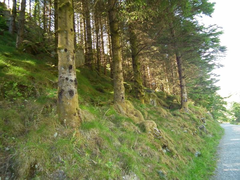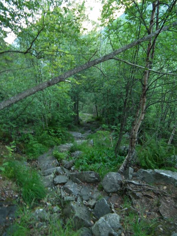 Wieczorem po kolacji wybraliśmy się jeszcze zobaczyć dokąd prowadzi kamienne wejście na górze która była tuż obok nas to ta góra z drugiego zdjęcia z hyttami z postu wcześniej. Niestety z tej wycieczki zdjęć do pokazania mam niewiele bo było już po 21-ej i choć nadal było widno to w drzewach już ciemnawo na zdjęcia.