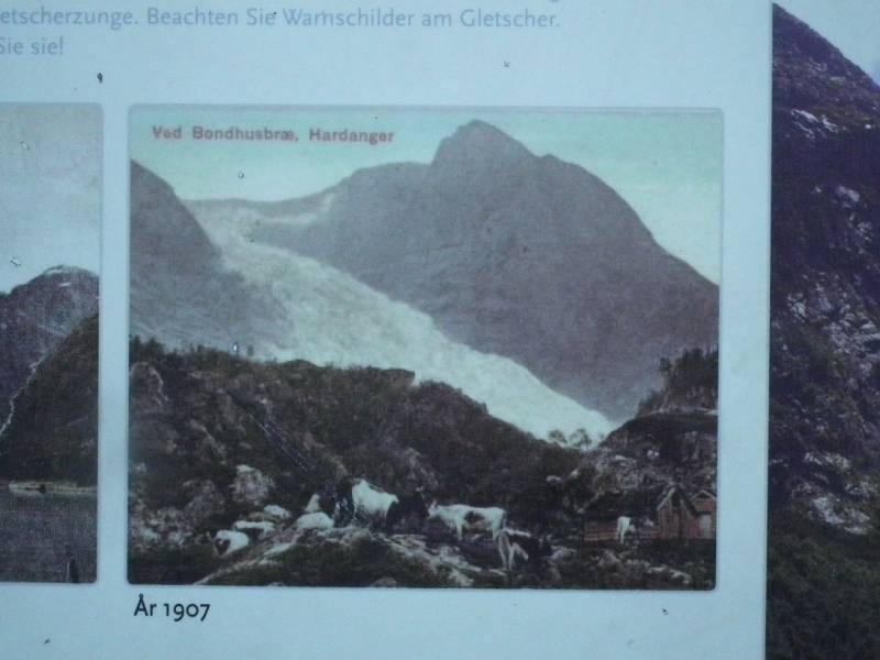 Z nad jeziorka można podziwiać lodowiec Bondhusbrea, będącego odnogą lodowca Folgefonna. Na początek pokażę Wam kilka zdjęć z tablicy informacyjnej (nie są najlepsze ale czasu wszędzie niewiele wybaczcie)