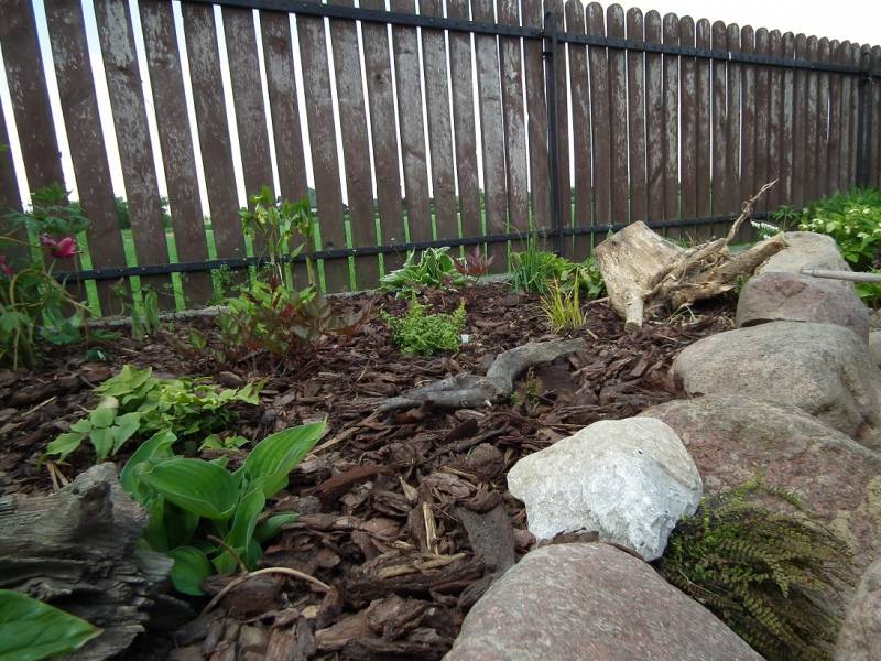 W rogu powstała delikatnie podniesiona rabata, na którą cień będzie dawała katalpa jeśli tylko przeżyje przesadzanie i będzie rosła