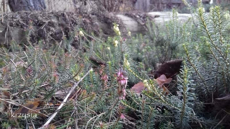 Dobrze przezimowały wrzośce, są u mnie roślinami zadarniającymi, płożą się nisko, jednak z kwitnieniem słabo.