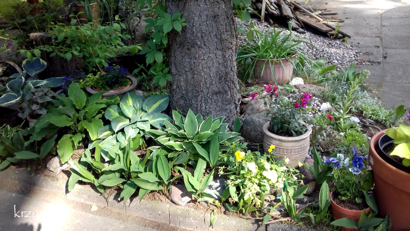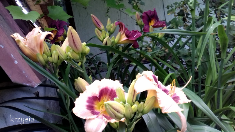 , wzdychając do róż naszych różanych koleżanek, posadziłam kilka, żeby zaspokoić apetyt. Liliowce powoli się rozkręcają, może u mnie wcześniej zakwitły, bo większość mam w donicach