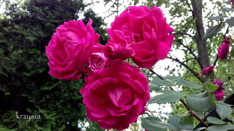 Czerwona to kanadyjka Alexander MacKenzie, w zasadzie nie czerwona a ciemnoróżowa, malinowa, kupiłam, bo podobno odporne, kwitnie nadal, choć już widać zmęczenie