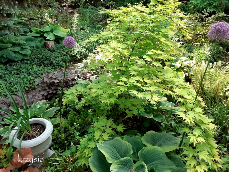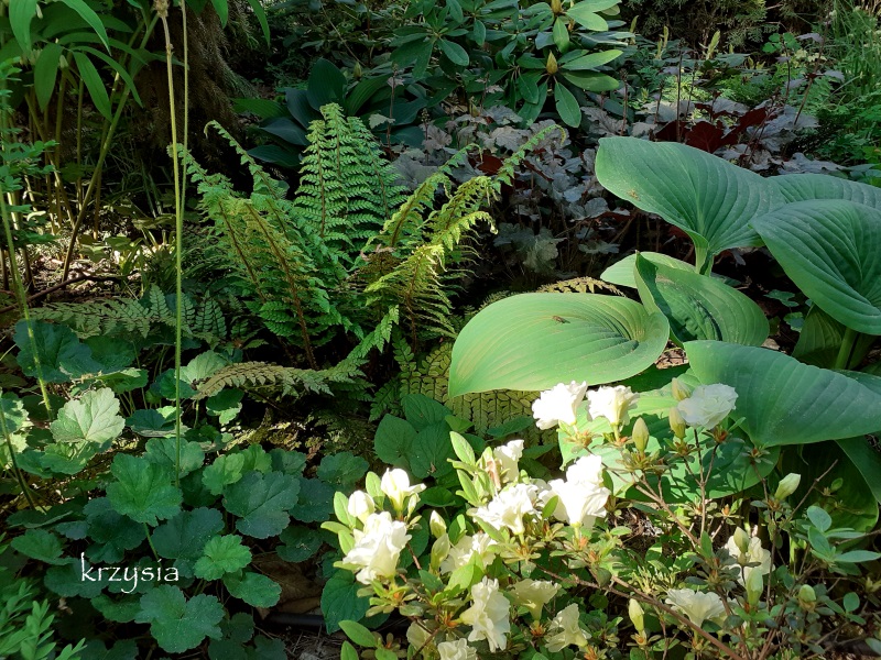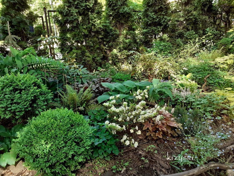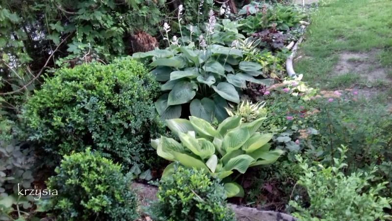 Sama się dziwię, że hosty jeszcze nie objedzone, podziurawione szyszkami, niektóre leciutko uszkodzone przez grad, ale ślimaki je na razie oszczędziły, choć jeśli powiem to głośno to pewnie zaraz nadrobią niedopatrzenie