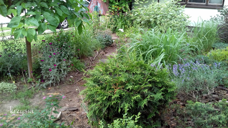 Robiłam zdjęcie mojej morwie i pomyślałam, że ta część jest rzadko przeze mnie fotografowana, jest tu bardzo sucho, rośliny marne, ale tegoroczne deszcze trochę poprawiły widok.