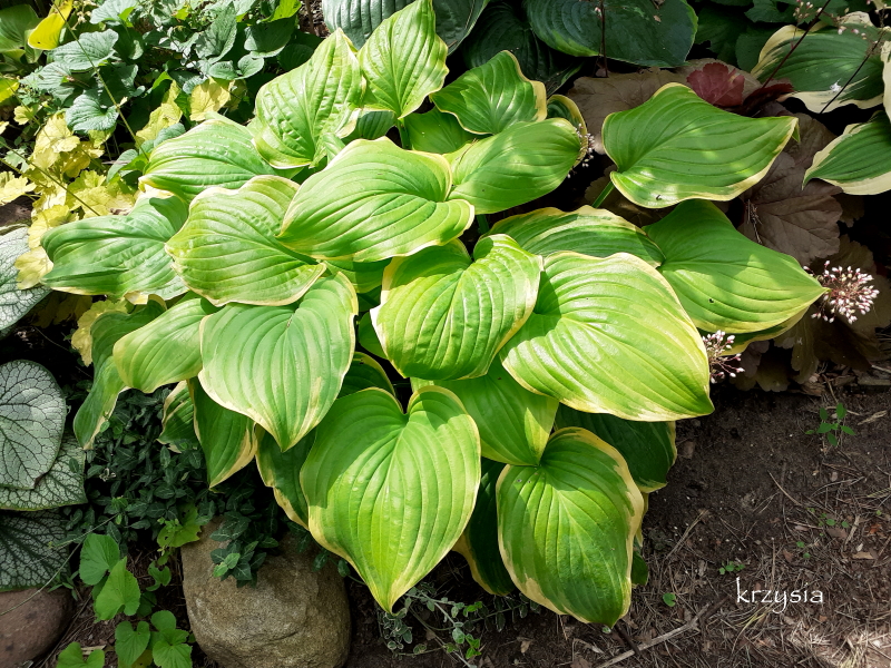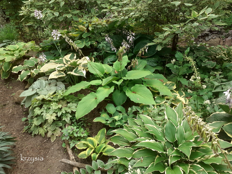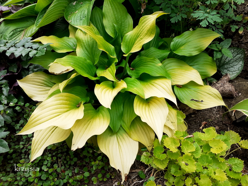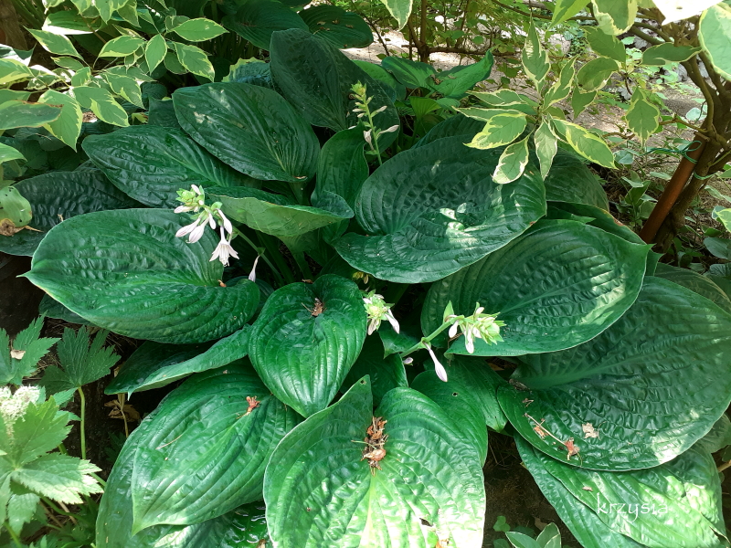 Nelu , dwa słoneczne dni i kilka host mocno przypalone, za późno rozstawiłam parasole, a dziury już są, nie tylko ślimaki lubią te liściory.