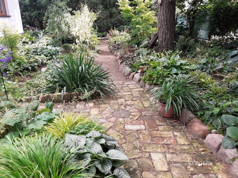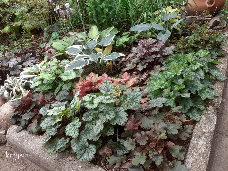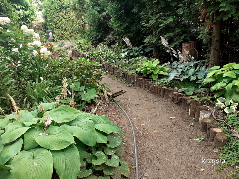 . W tym roku jakby mniej dziurawych host, ale te zdjęcia to z 'wyspy' na środku ogrodu, tam ślimakom trudniej się przedostać, ścieżka jest sucha, na rabatach pod płotem jest ich sporo. Przed wycięciem świerków, na tej środkowej, płożył się bluszcz i barwinek, miały schronienie, a teraz wiosną, zanim hosty ruszą, jest tam pusto i chyba dlatego mało szkód. Poza tym u mnie głównie te w muszlach, czasami gdzieś w kącie pomrowy żerują, nie ma tych okropnych rudych.