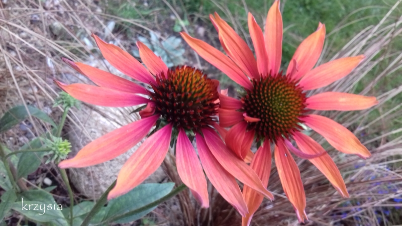 To były zdjęcia z końca lipca, teraz wśród trawek zakwitają młode jeżówki.