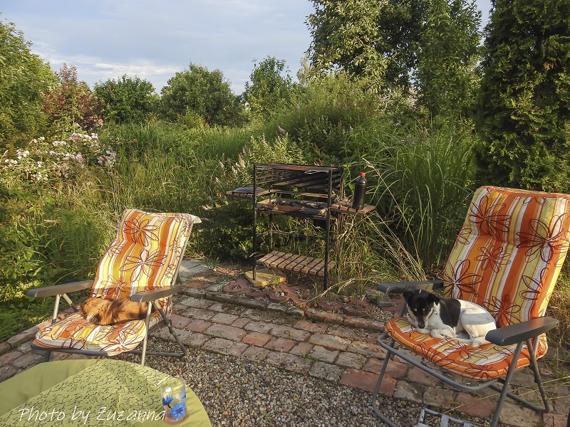 Letnicy plażują- służba robi. Wiadomo. Musiałam wydostać ze składziku w oborze dodatkowe krzesła, bo przy tylu chętnych wyściełane leżaki były zajęte w pierwszej kolejności!