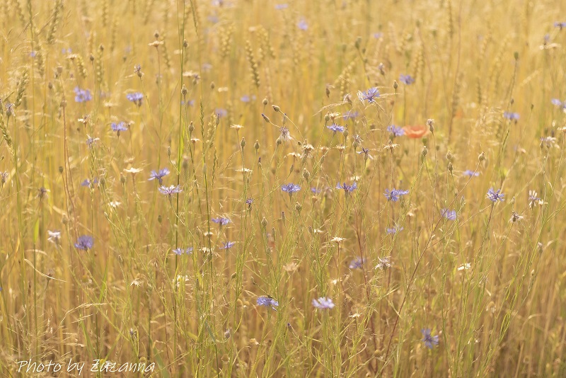 Te domieszki w zbożu traktowane są na wsi jak zanieczyszczenia, a dla mnie to widok najpiękniejszy. Tam gdzie herbicyd nie sięgnął, to rosną :-)