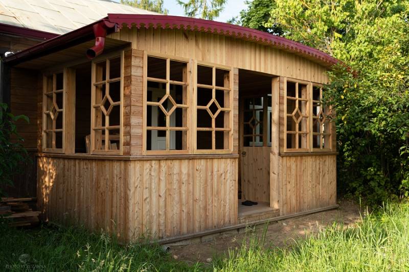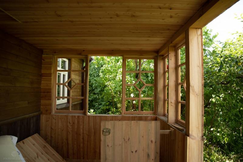 A na wsi... kto nie czyta bloga ten nie wie, że weranda u nas już w stanie surowym pół zamkniętym. Mamy pięknie wykończony koronką dach, rynny, ale przede wszystkim okna! Na razie widziałam ramy, które zrobił nam miejscowy stolarz Wiesio na podstawie nieskładnego instruktażu W. oraz jego bazgrołowatych rysunków.