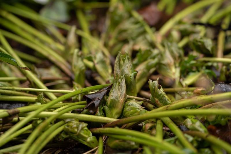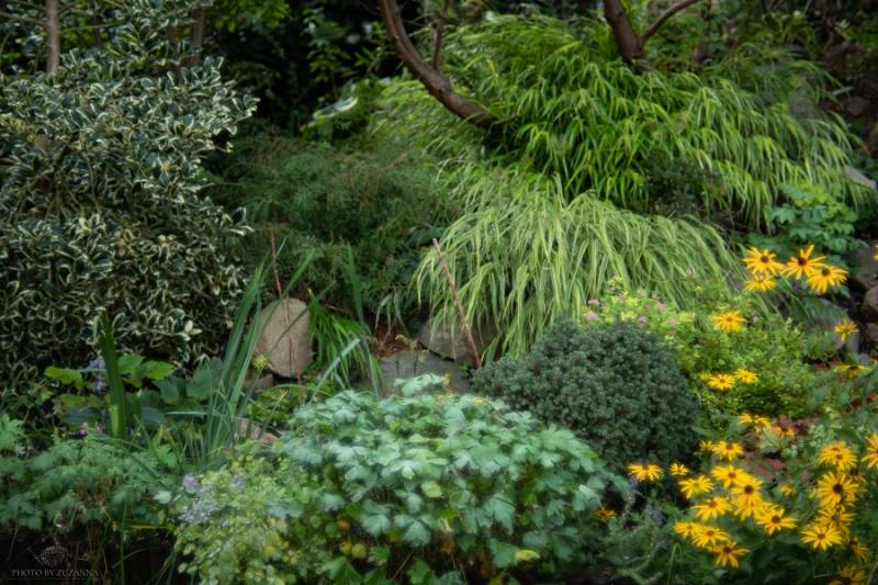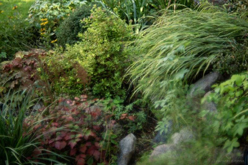 Na koniec sezonu mieliśmy trochę przemeblowania na kwasolubnej, wyjechał thujopsis, na to miejsce weszła marniejąca w cieniu Pinky-Winky, dwa nowe ciemierniki, nowy kiścień i trochę wiosennych cebulowych.
