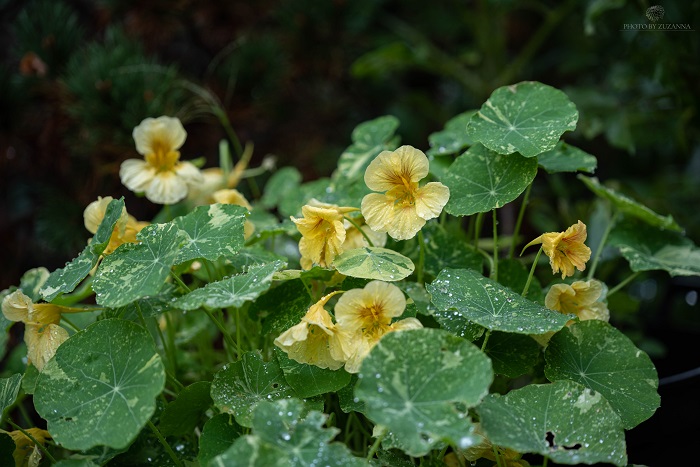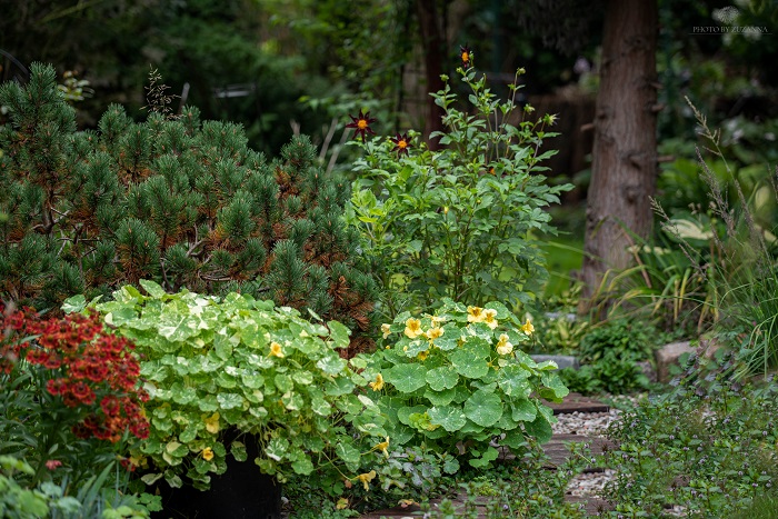 Żanetko w tym roku wysiałam po raz pierwszy nasturcje w trzech odmianach i ta łaciata bardziej zwraca uwagę liśćmi niż kwiatami, choć kwitnie nieprzerwanie, a ja nie bawię się w usuwanie zawiązków nasion