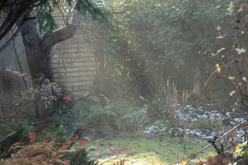 Ja się trochę utyrałam w dniu wczorajszym, ponieważ doznałam wzmożenia polegającego na gwałtownej chęci zrobienia porządków na froncie, gdzie na części pierwotnie przeznaczonej na placyk parkingowy dla samochodu W. urządził skład roślin wszelakich, skrzynek, doniczek oraz kamieni otoczaków. Kiedy w donicach jeszcze kwitły różne rzeczy, to jakoś powiedzmy było to do wytrzymania. Ale teraz zrobił się ponurawy misz-masz badyli, zeschłych liści i utensyliów ogrodniczych beztrosko porzucanych przez W. w różnych miejscach. Poza tym część krzaczków nie mogąc doczekać się miejsca w ogrodzie wyzionęła ducha np. leszczynowiec chiński.