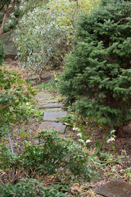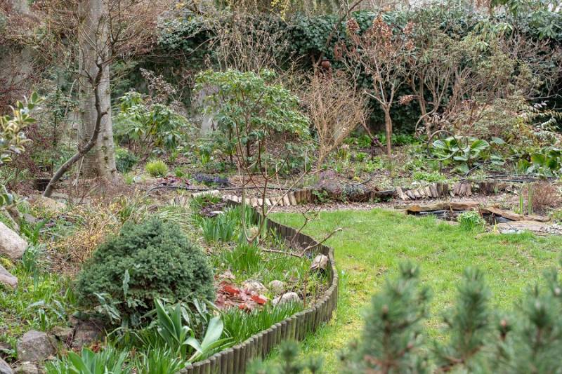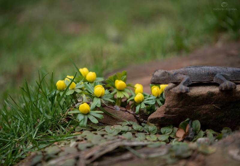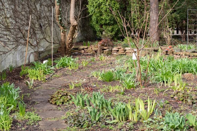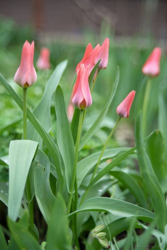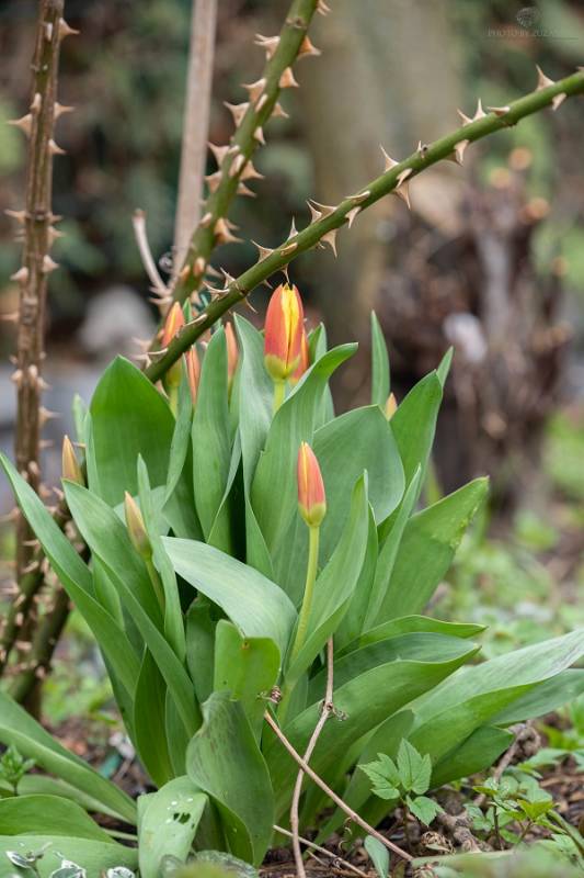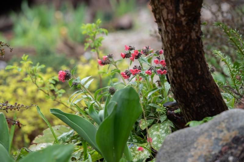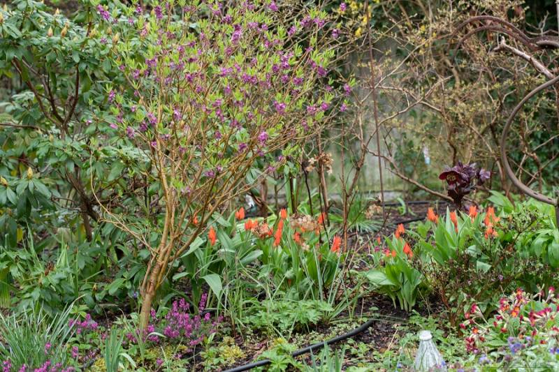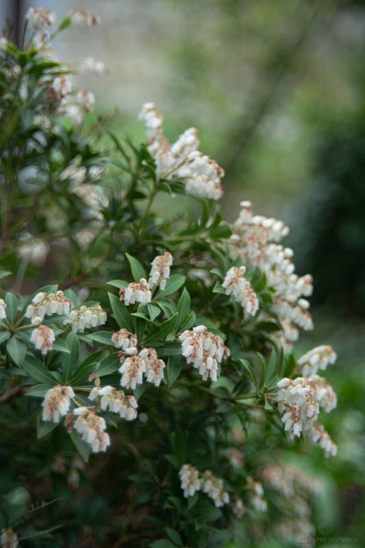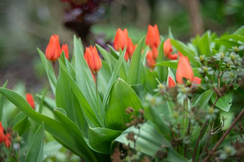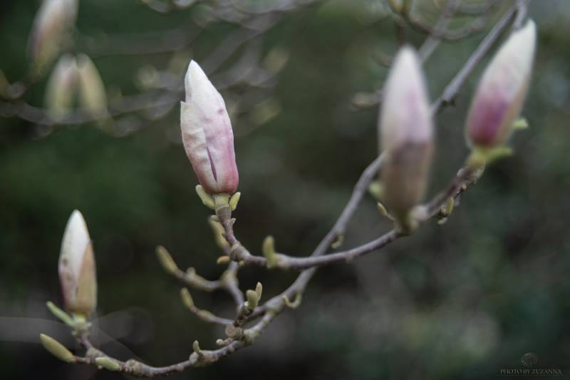 W ogrodzie coraz bardziej wiosennie. Kwitnie pierwszy rzut tulipanów, pieris, miodunki, pierwiosnki i wawrzynek. Magnolia już prawie prawie.